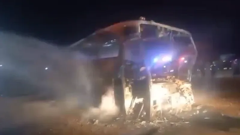 احمد الله متقي موجب، ٽڪر کانپوءِ گاڏين ۾ باهه لڳي وئي، جنهن سبب بس ۾ سوار سمورا ماڻهو فوت ٿي ويا، فوتين ۾ 17 ٻار به شامل آهن.