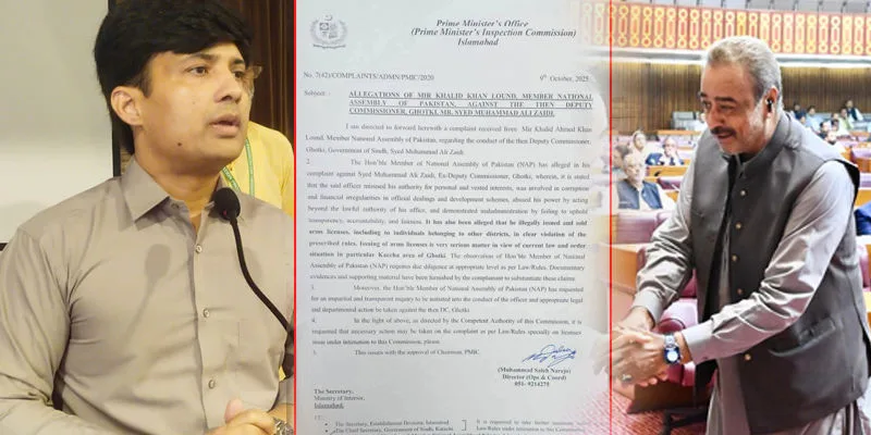 خالد خان لنڊ جا گھوٽڪي جي اڳوڻي ڊي سي تي ھٿيارن جا لائسنس وڪڻڻ جا الزام، وزير اعظم سيڪريٽريٽ محمد علي زيدي خلاف جاچ جو حڪم ڏئي ڇڏيو